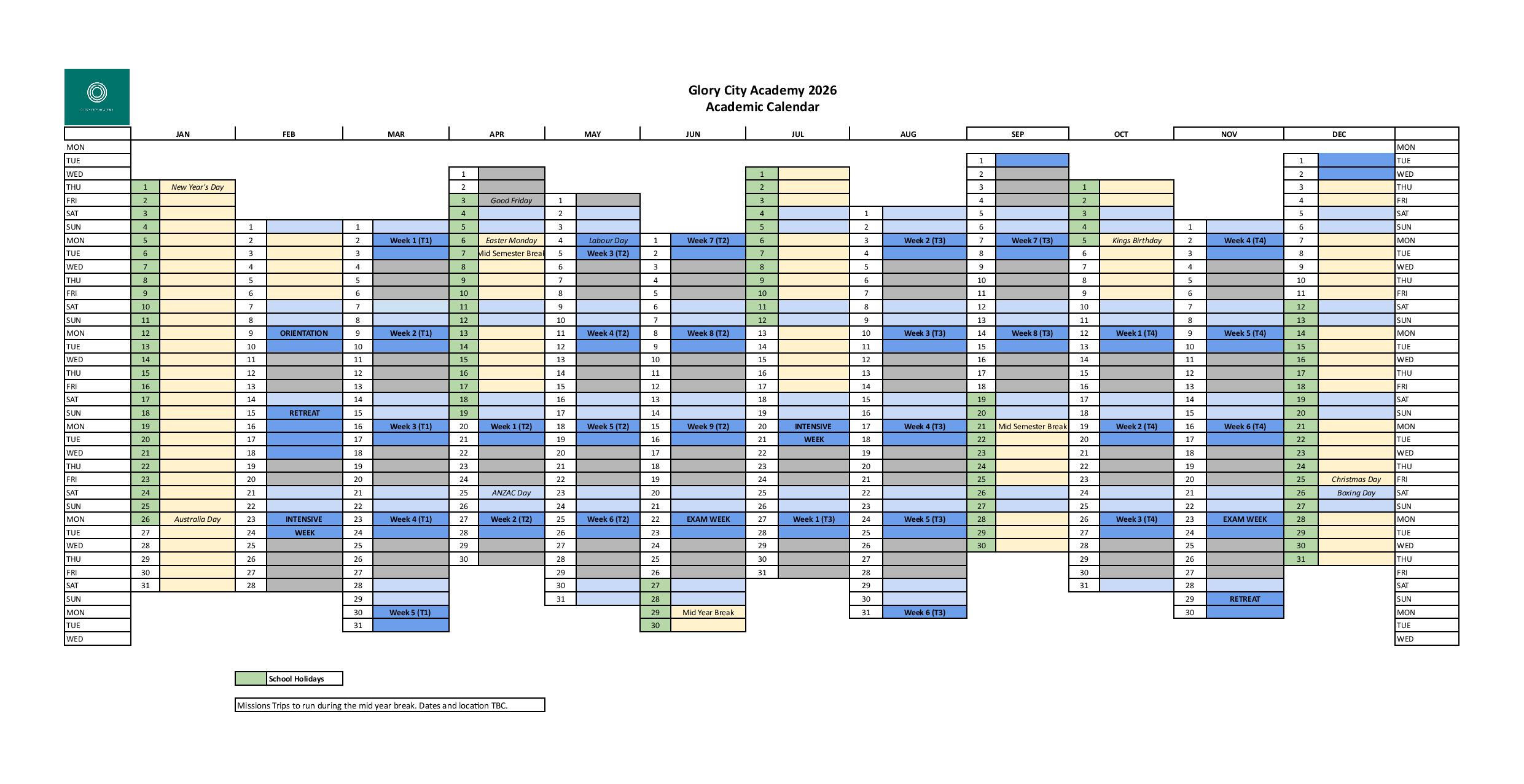 | 1 | Mon 9th Feb (Full Time) Mon 2nd Mar (Part Time) | Tue 31st Mar (Full Time) Mon 30th Mar (Part Time) |