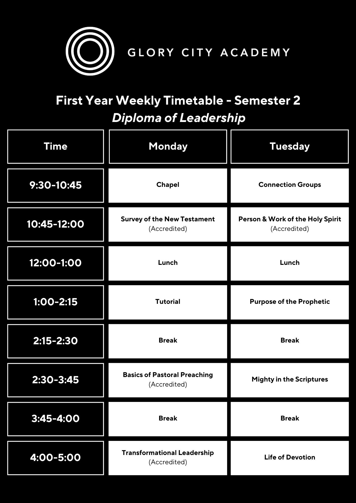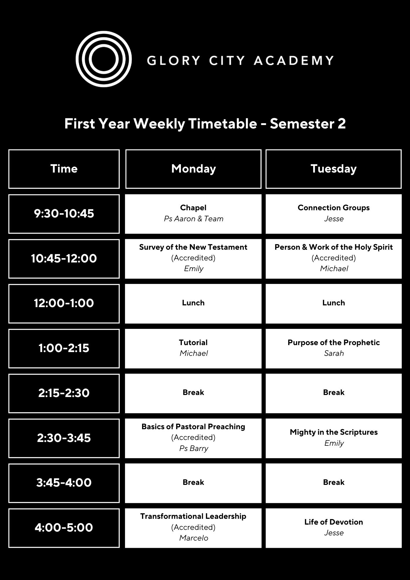 Introduction to Christian Leadership is a unit focused on self-leadership and personal discipleship. Students are taught spiritual disciplines, character integrity and basic self and small group leadership principles to equip them to serve the Church in greater capacity. This unit also covers the traits and behaviours of Biblically sound leadership, how to identify leaders in the real world and in turn, how to develop oneself as a leader.